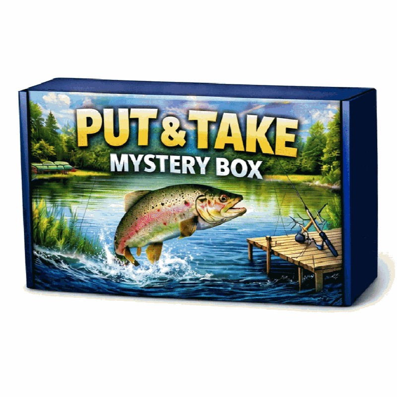 Fisk & Fang mystery box Put&Take fiskeri - Denne mystery box består af lækkert endegrej til put&take fiskeri, som vi får lov til at vælge til dig. Da vi får lov til at vælge blandt alt put&take-endegrej , skær vi en god bid af prisen, så du får rigtig meget for pengene. Her spare du rigtig mange penge.