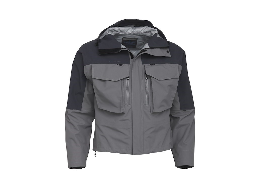 Kinetic X3 vadejakken er designet til at give dig funktionalitet i guideklasse og 100 % vejrbestandig med åndbar komfort. X3-jakken har fire brystlommer med lynlås til at gemme lokker og fluer, og to fleeceforede håndvarmerlommer i taljen. Har også justerbar hætte, D-ring på ryggen, gummibelagte faner til værktøjsmontering, justerbar forneden med snoretræk og elastiske manchetter med krog-og-løkke-lukningsjusteringer.