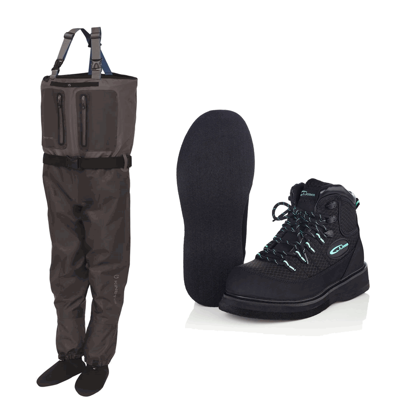 Kinetic X5 åndbare waders med Kinetic GravelGaite vadestøvler med filt - Et super lækkert åndbar sæt i høj kvalitet.